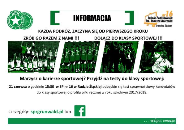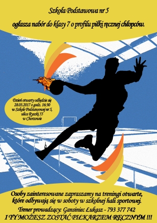 Wzorem lat ubiegłych trenerzy Ośrodka Szkolenia w Piłce Ręcznej dziewcząt, funkcjonującego w Gliwicach przy Zespole Szkół Techniczno - Informatycznych, XI Liceum Ogólnokształcącym Sportowym, mają zaszczyt zaprosić uczennice III klas Gimnazjum (rocznik 2001) na zajęcia treningowe. Zajęcia mają na celu zapoznanie się z metodami pracy w Ośrodku i przygotowanie do I klasy Liceum.