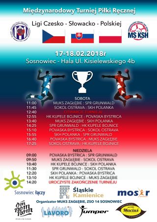 Rywalizacja chłopców w Povaskej Bystrici zakończyła się zwycięstwem MUKS Zagłębie ZSO 14 Sosnowiec przed SKH Polanka, Sokolem Ostrava, SPR Grunwald Ruda Śląska, MK Povaská Bystrica i HK Kúpele Bojnice. Indywidualne nagrody otrzymało dwóch naszych zawodników Łukasz Kamiński (Grunwald)-najlepszy obrotowy turnieju i Jakub Żaczek (MUKS)-najskuteczniejszy zawodnik.