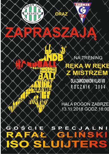 13.11.2018 o godz. 18 w hali sportowej "Pogoń" w Zabrzu odbedą się zajecia naborowe do klasy I liceum pod hasłem "Trening z mistrzem".